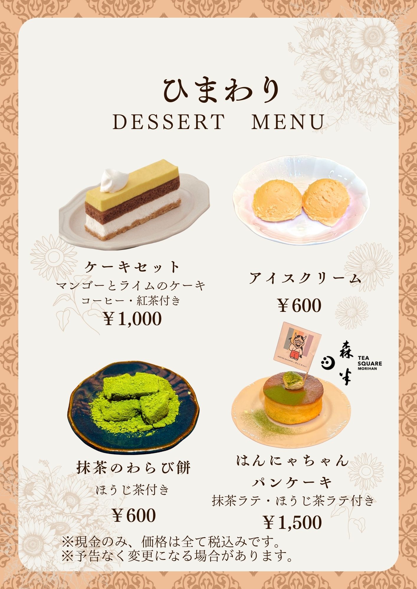 国立能楽堂にあるレストラン「お食事処ひまわり」では、季節ごとに様々なデザートメニューをご用意しています。