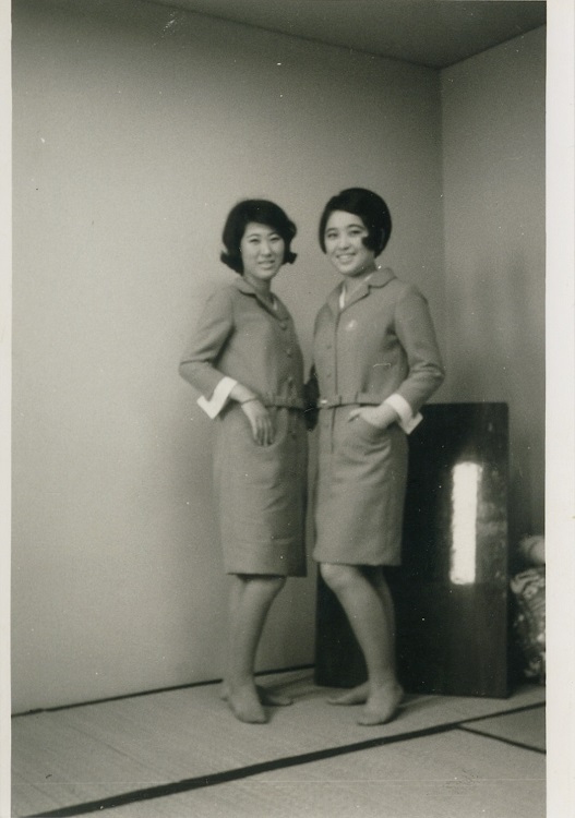 森英恵先生デザインの夏用制服が届いた記念に更衣室で。