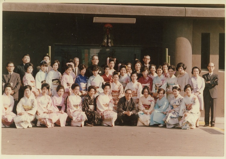 開場翌年の1月(初春)。公演初日に和服姿の劇場課職員他と理事長さん中心に記念写真です。