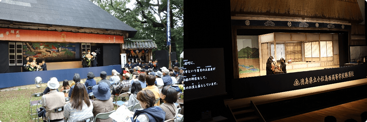 右:第6回ジュニア浄瑠璃フェスティバル(阿波市交流防災拠点アエルワ)
