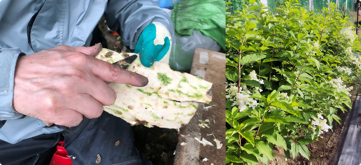 また今回のノリウツギの場合、これまでは天然資源から採取するばかりで栽培の前例がなく、資源量は枯渇状態でした。また採取者の高齢化や、山野での採取の危険性により採取技術自体も継承が危ぶまれていました。