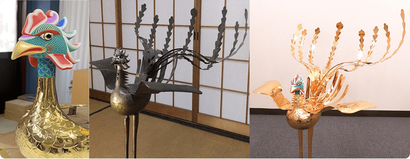 助成を受けたことにより、文化財としての価値を損なわずに必要な鉾構成部品の修繕・修復ができました。特に、鳳凰山の鉾頭「鳳凰」の顔部分の彩色に関しては、修復業者を通じ、「国立民俗博物館」の協力を仰ぐ事ができ、マイクロスコープやX線などを用い、分析を行って頂きました。これにより、2層の下地と朱、緑青、群青などの岩絵具による色付けなどが判明し、適切な修復が進められました。