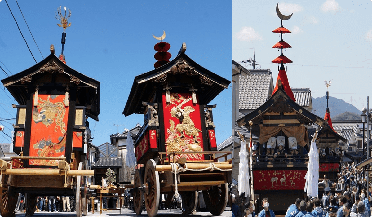 - ① 鉾山巡行:鉾山・鳳凰山および三笠山の屋根に修理・復元した鉾を付け、無電柱化された約600メートルの河原町通りを110年ぶりに巡行。日時:令和5年(2023)3月19日(日曜日)