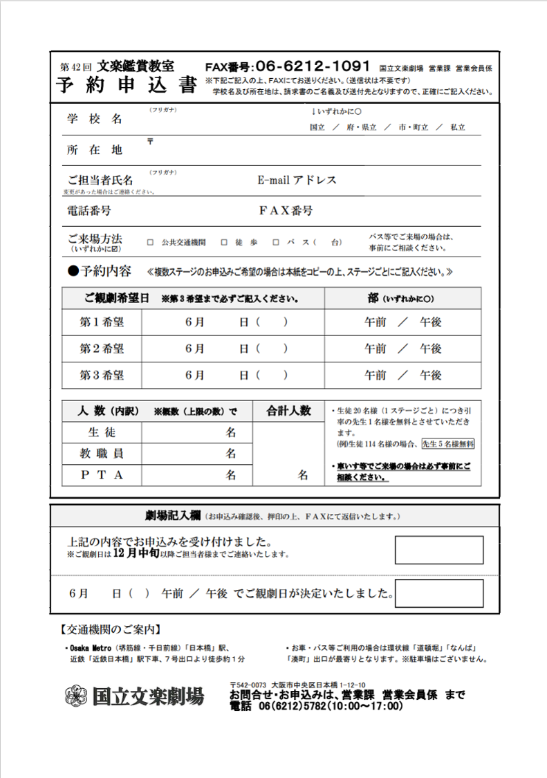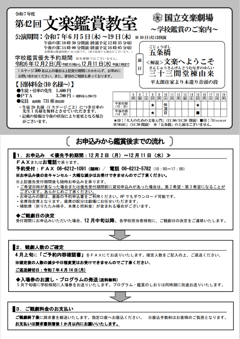 令和8年度 国立文楽劇場 文楽鑑賞教室 お申込日程