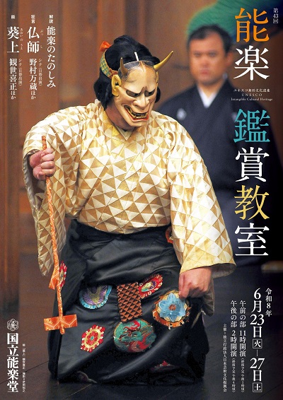 | 公演名 | 6月能楽鑑賞教室 | Discover Noh & Kyogen 外国人のための能楽鑑賞教室 ※英語の解説と6か国語の字幕で外国人の方にもわかりやすくご覧いただけます。 |