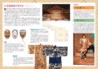 団体鑑賞のお客様全員に詞章付きのプログラムをあらかじめお渡しいたします。作品の見どころや能楽の基礎知識をマンガなどを交えて丁寧に解説しておりますので、事前学習にご活用ください。