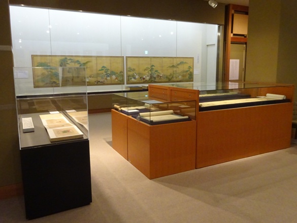 江戸前期の能絵は筆者や制作背景が全く分かっていません。しかし江戸中期以降については、近年の研究により、狩野春湖・狩野春笑・狩野柳雪・狩野梅春など、具体的な筆者やその背景が判明し始めています。「能楽図巻」(国立国会図書館蔵)、「能狂言巻物」(個人蔵)など、新出資料を含む狩野派絵師による能絵制作の実態に迫る展示です。 |