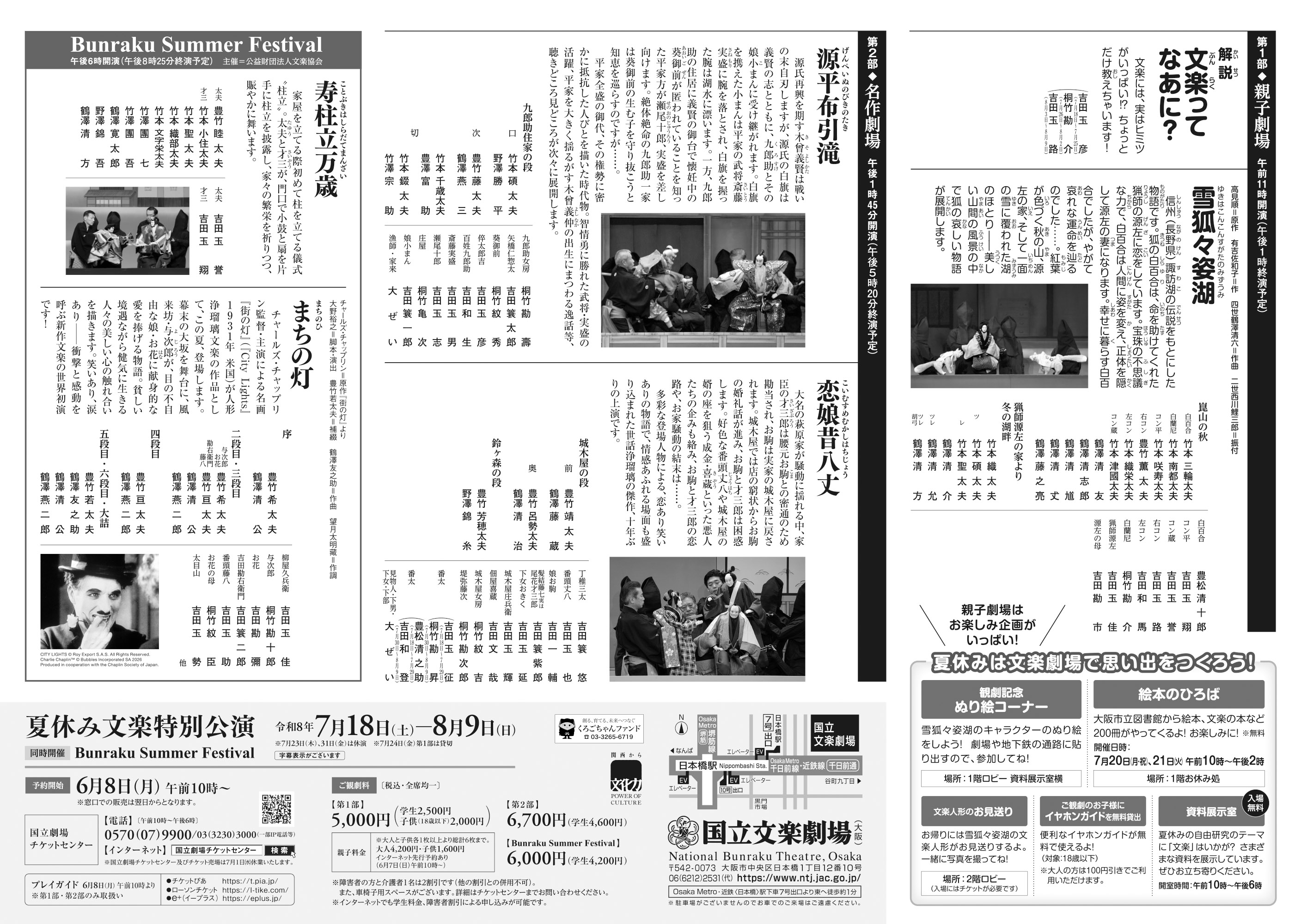 ※公益財団法人文楽協会主催Bunraku Summer Festivalも国立劇場チケットセンターでお求めいただけます。- お問い合わせ