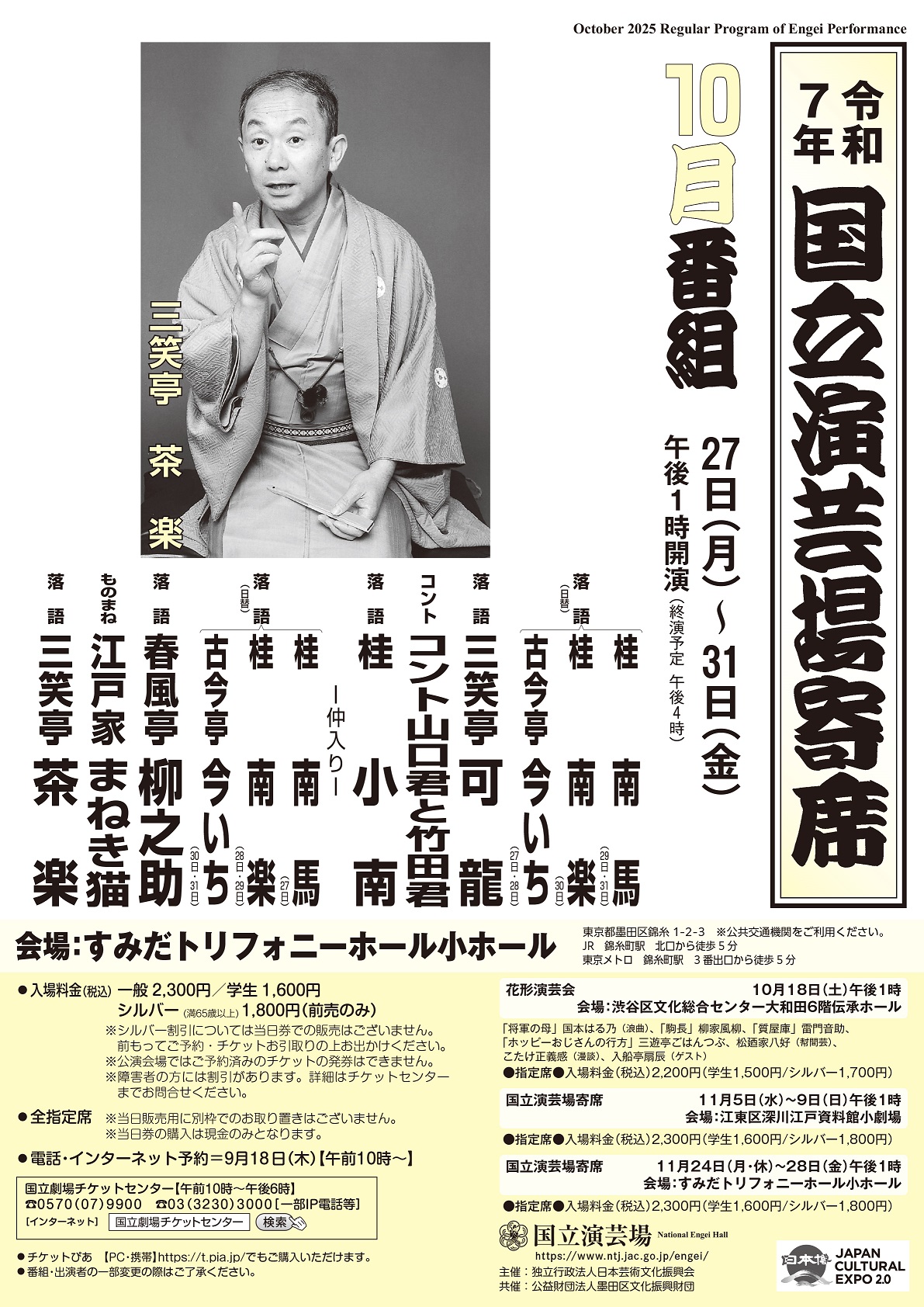10月国立演芸場寄席(27日~31日)【すみだトリフォニーホール小ホール】