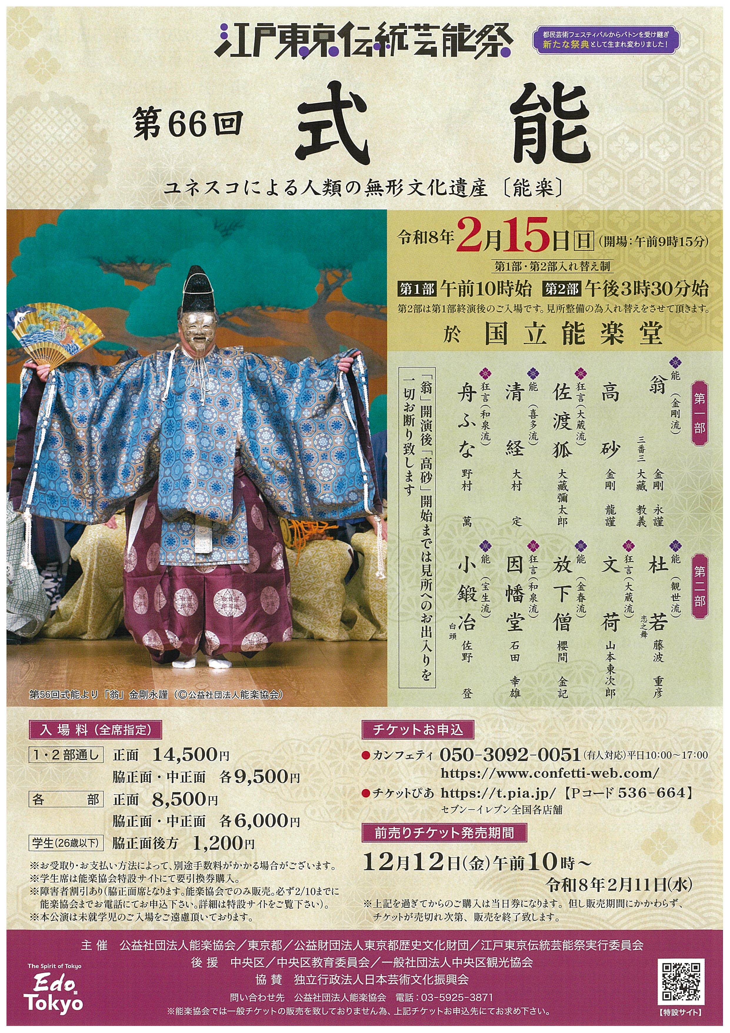 ※「翁」開演後「高砂」開始までは見所へのご入場ができません。