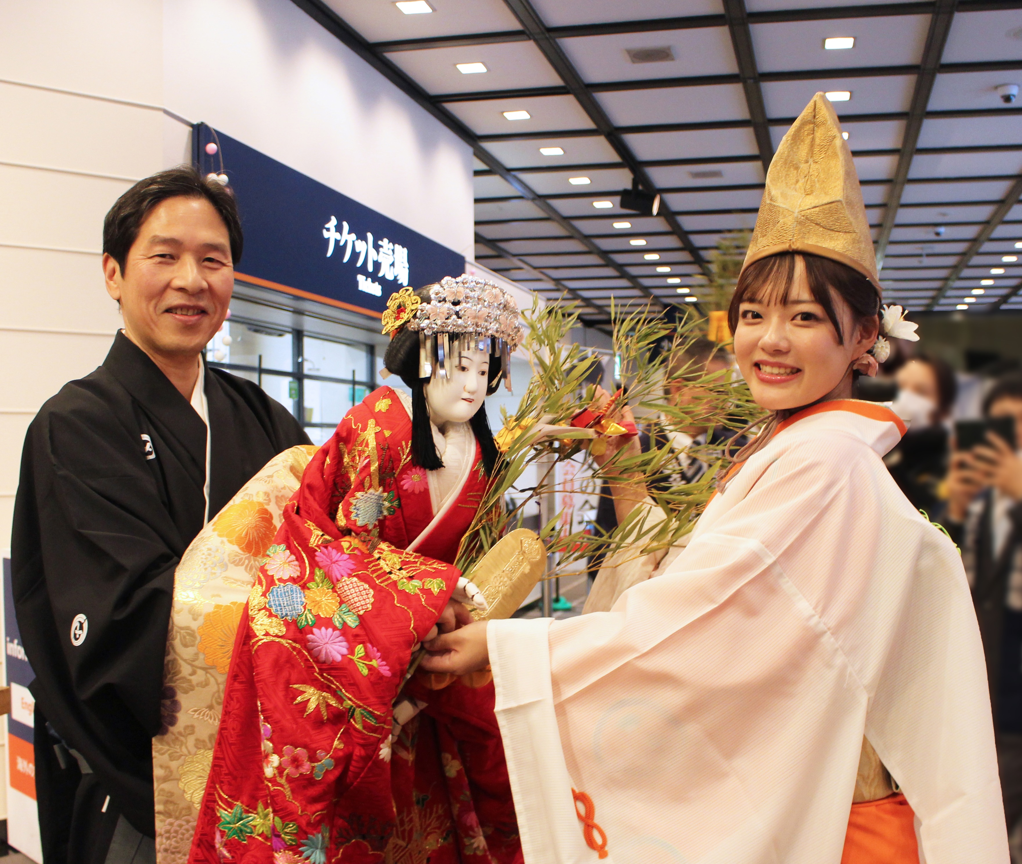 福笹は、吉田一輔が遣う文楽人形及び劇場関係者に授与されました。