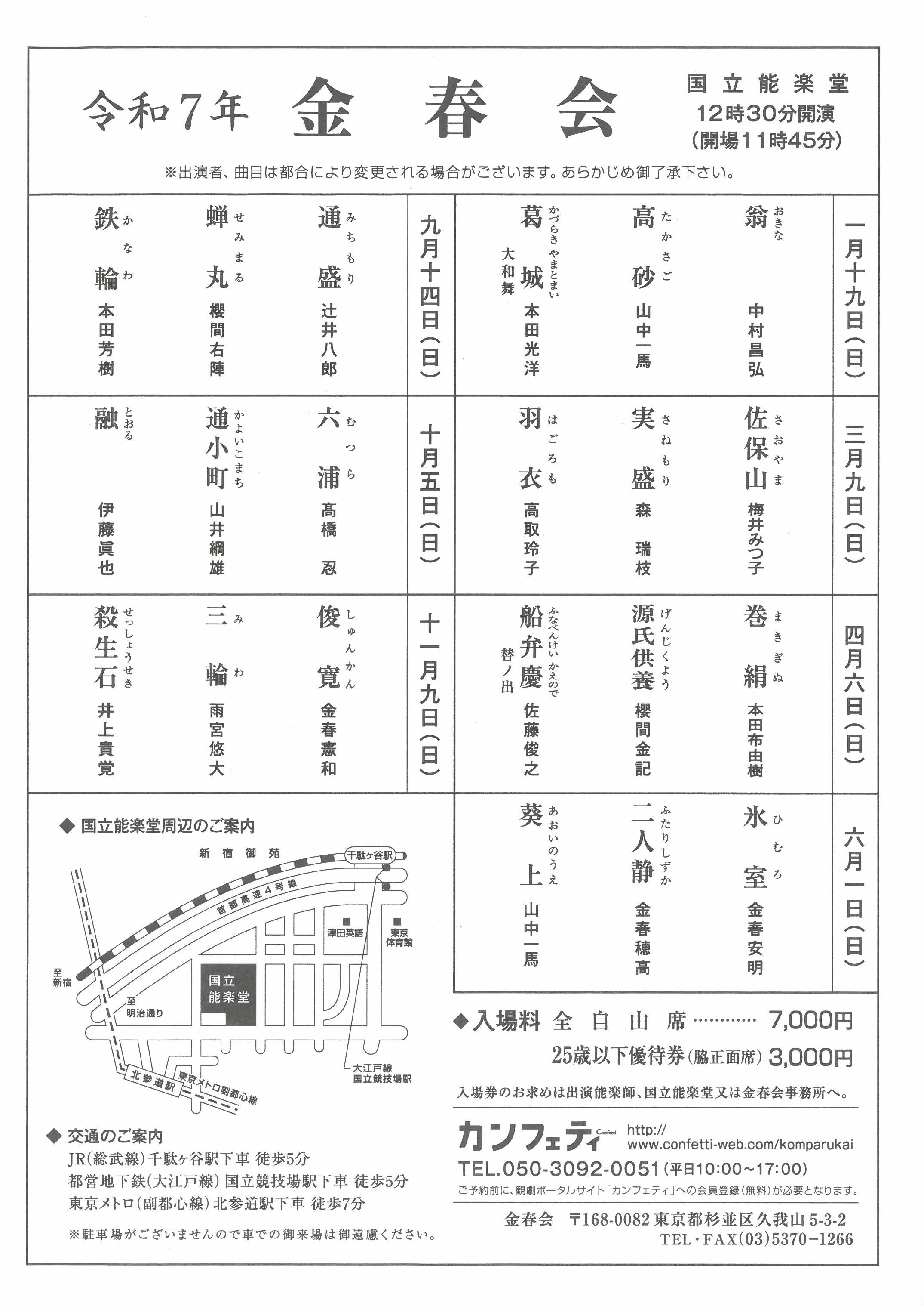 ◇令和7年11月9日(日)金春会定期能 午後12時30分開演