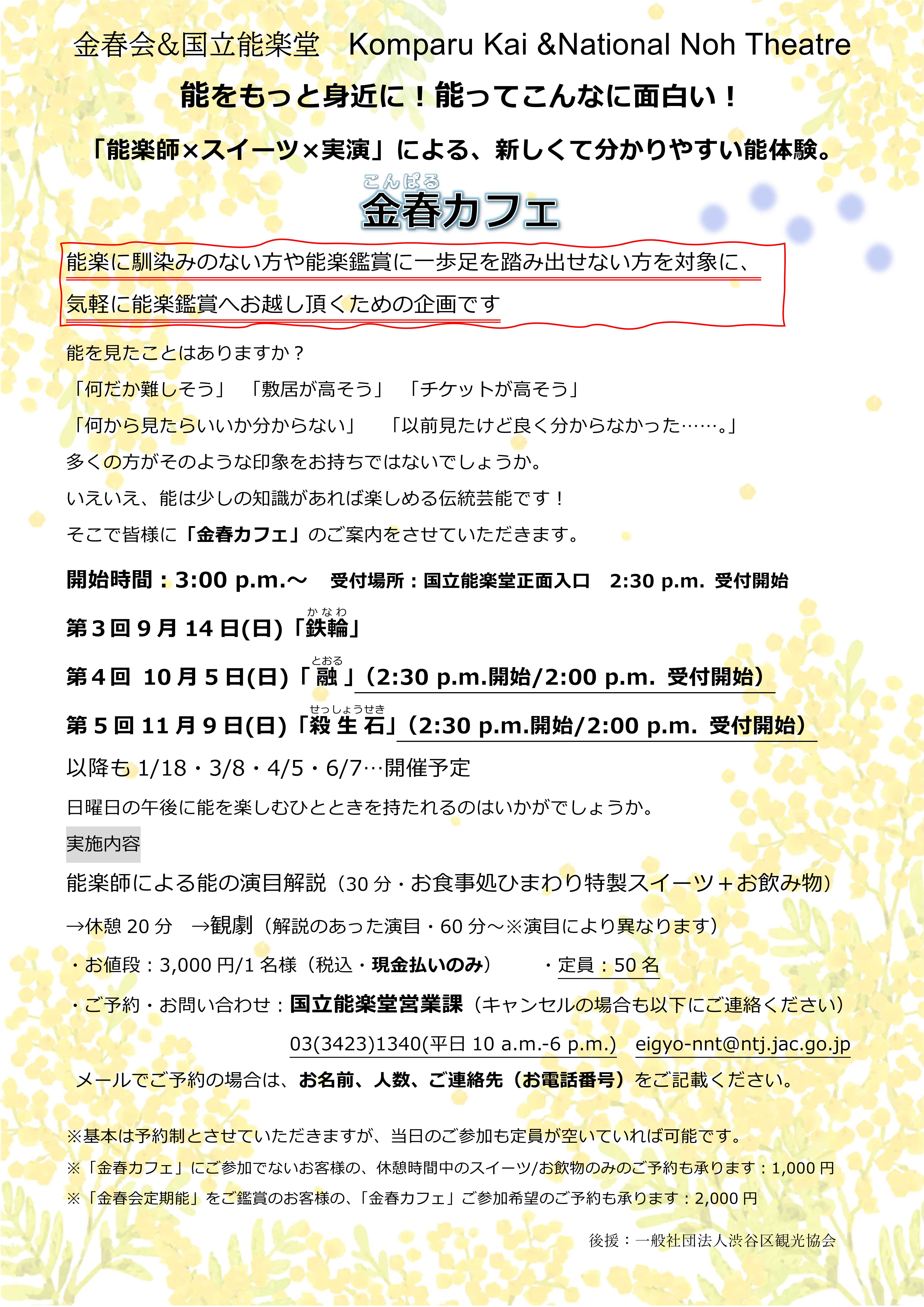ご連絡先:国立能楽堂 営業部劇場利用係 03-3423-1340 eigyo-nnt@ntj.jac.go.jp